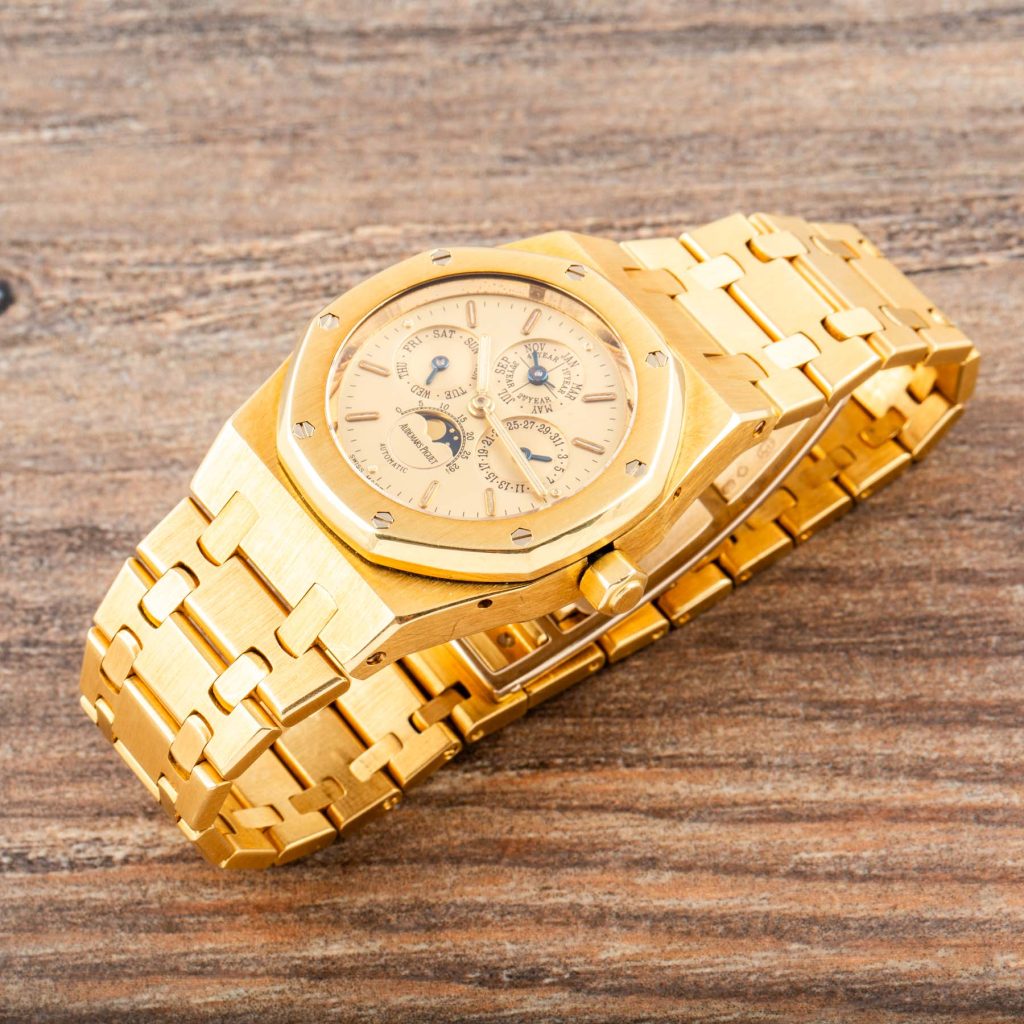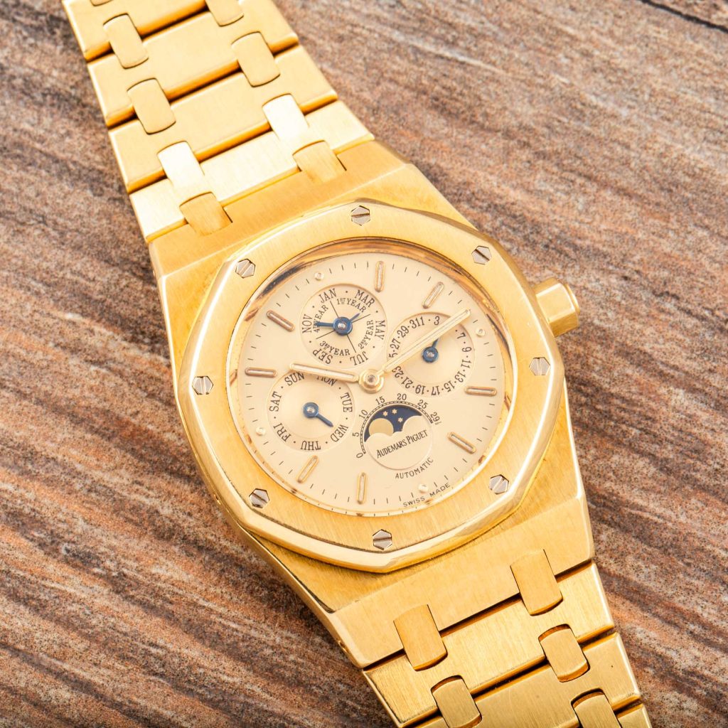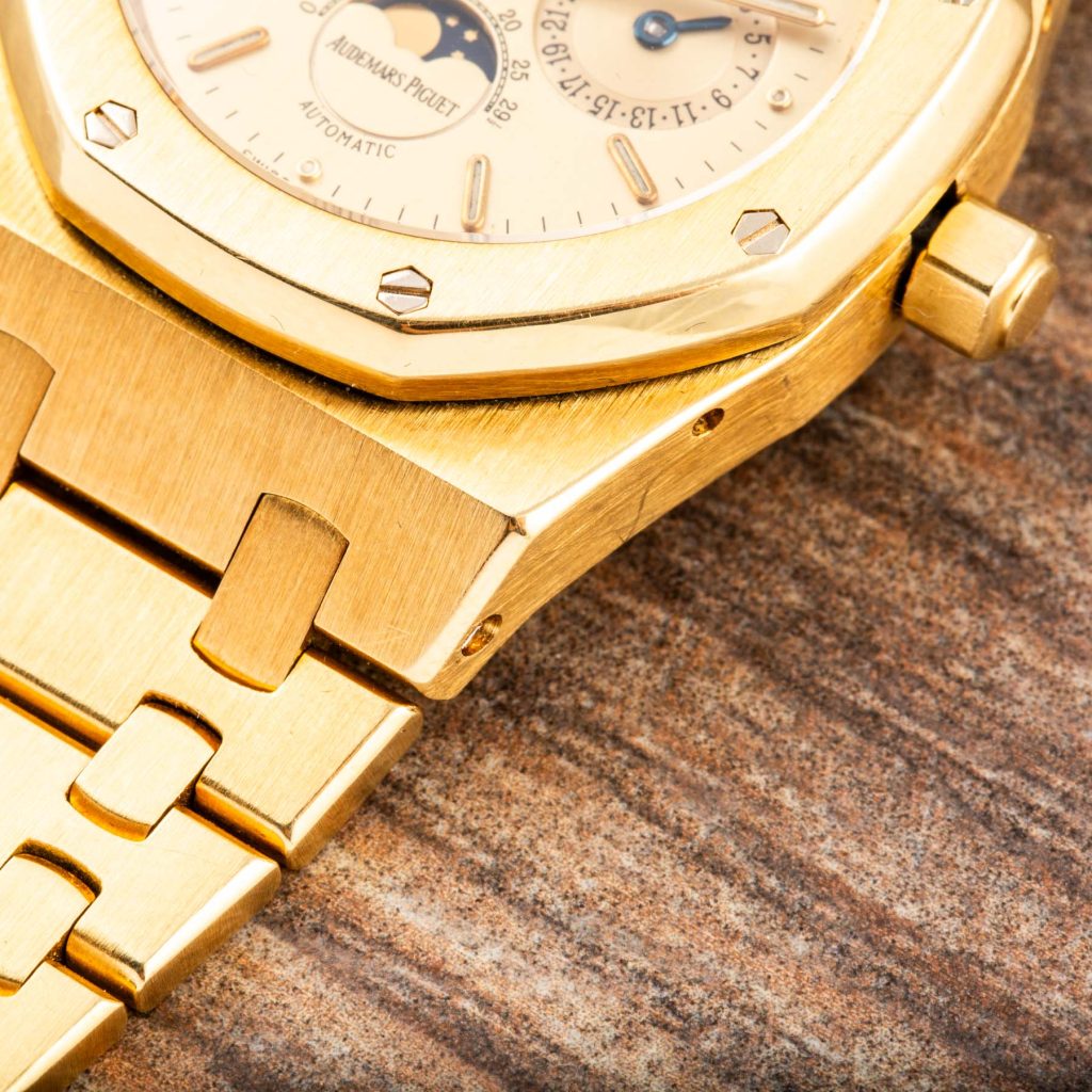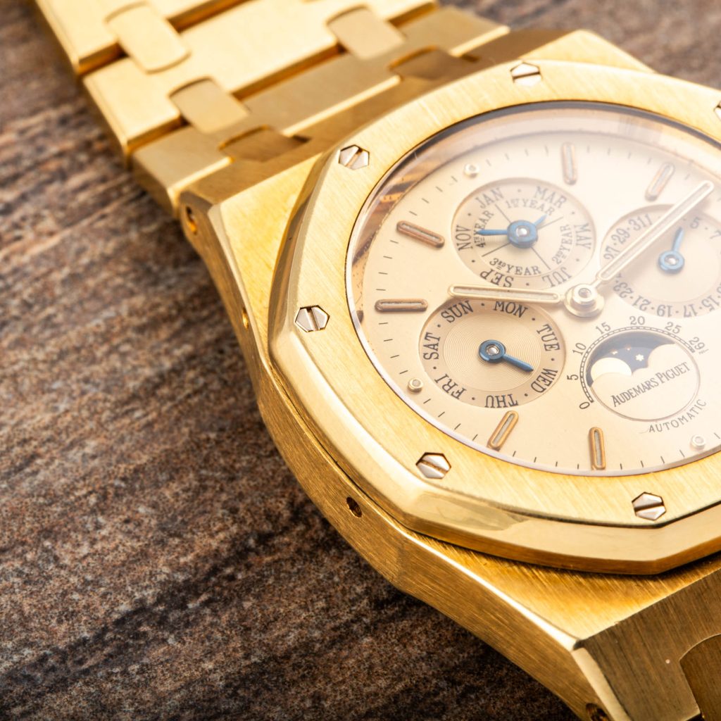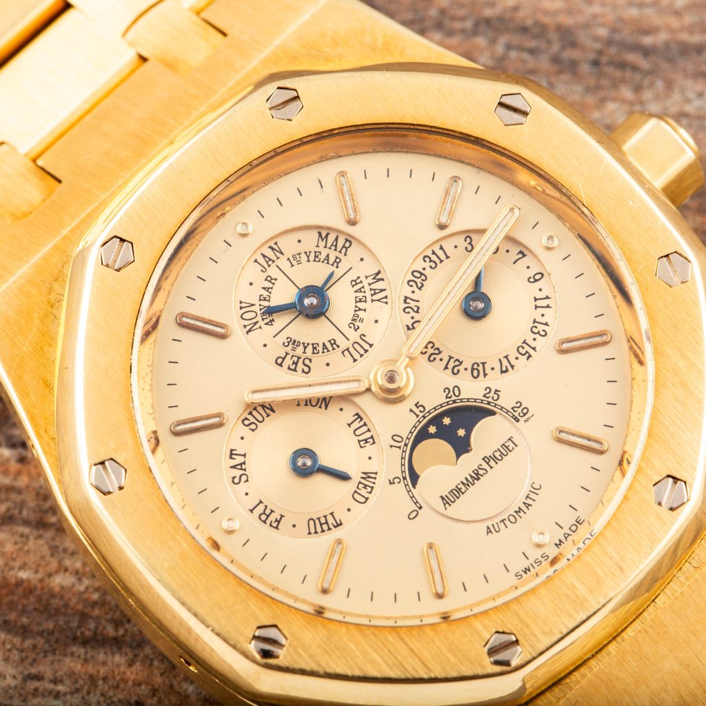 The Audemars Piguet Royal Oak Quantième Perpétuel has been one of the brand’s most admired and sought-after models since the mid-1980s. While most examples were produced with either a 36 mm or 39 mm case, the present example, reference 25800, features a refined 33 mm case, offering a perfect balance of elegance, wearability, and technical sophistication.