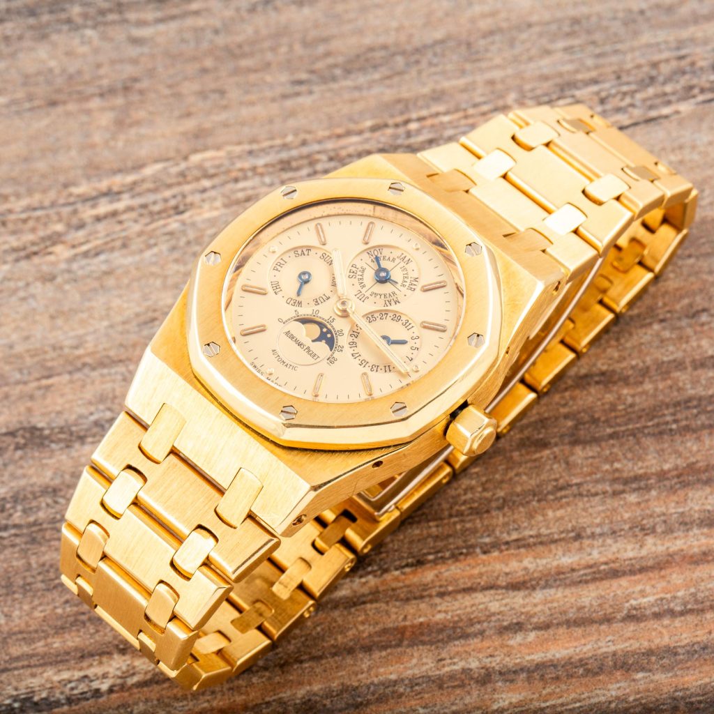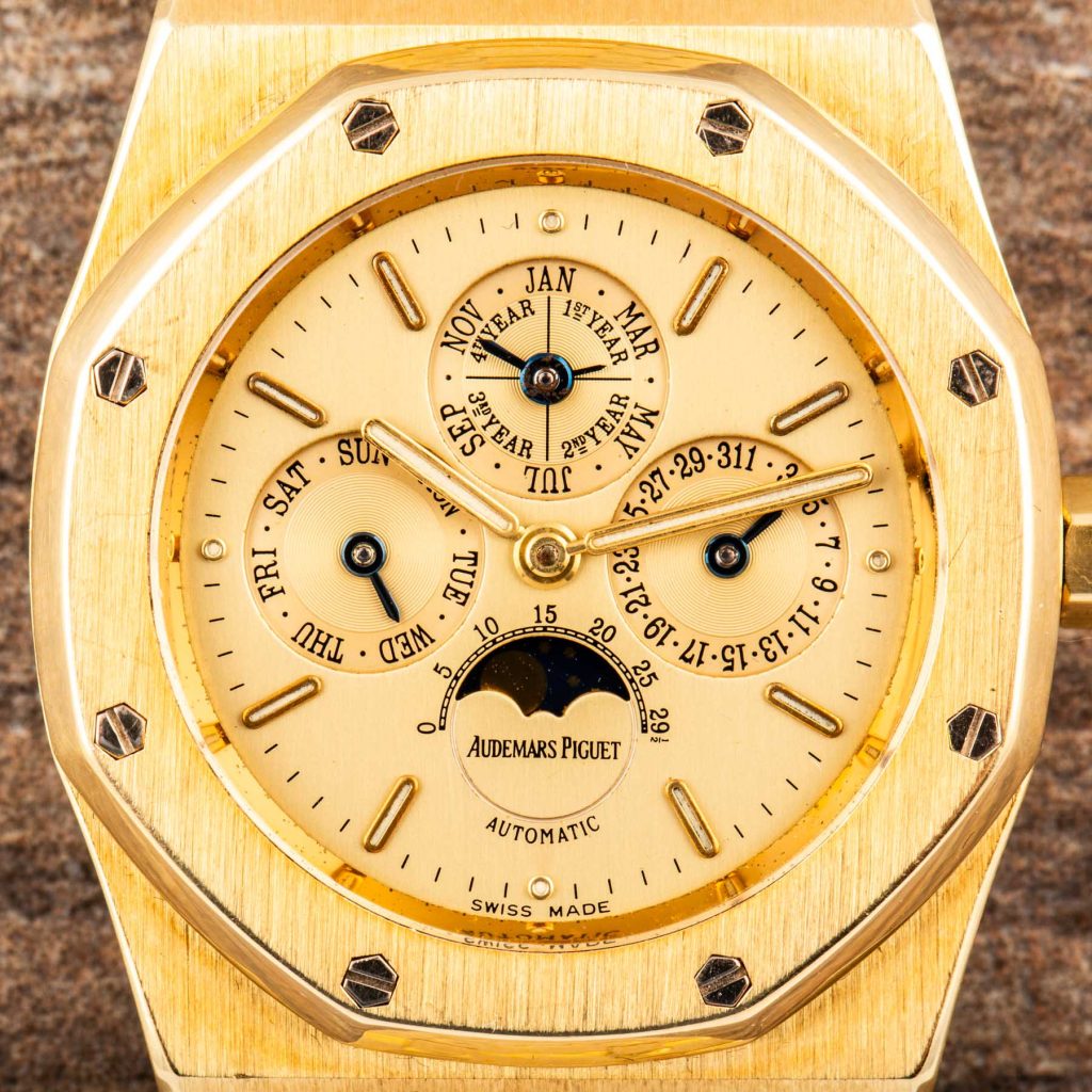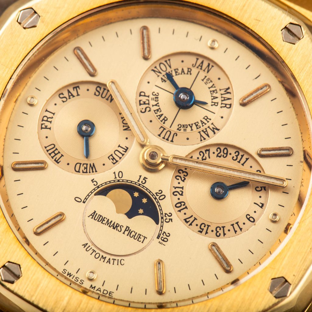 Introduced in 1996 and produced for only four years, until 2000, reference 25800 is among the smallest perpetual calendar wristwatches ever made. Most likely conceived with the Japanese market in mind, it represents an impressive mechanical achievement, as fitting an automatic perpetual calendar movement inside such a compact case is an extremely challenging task.