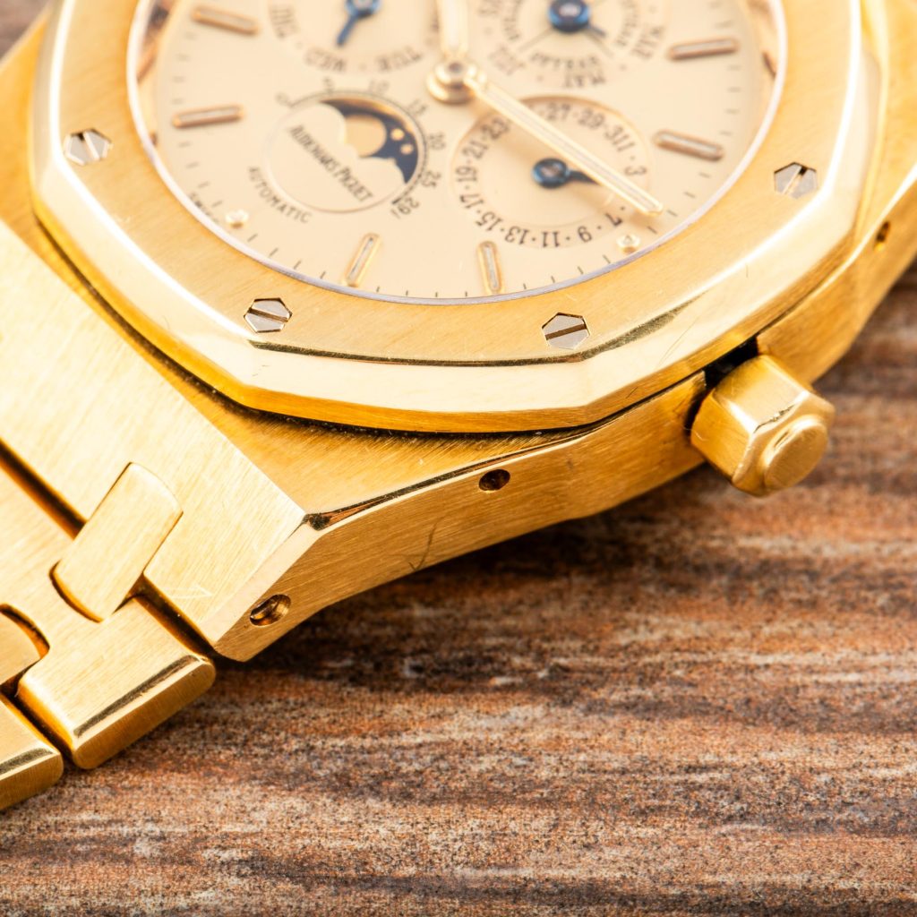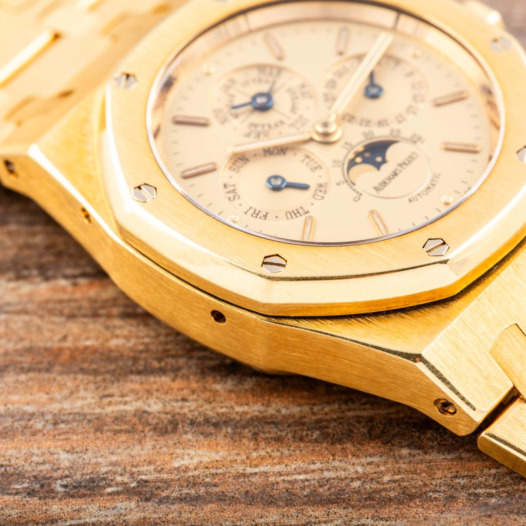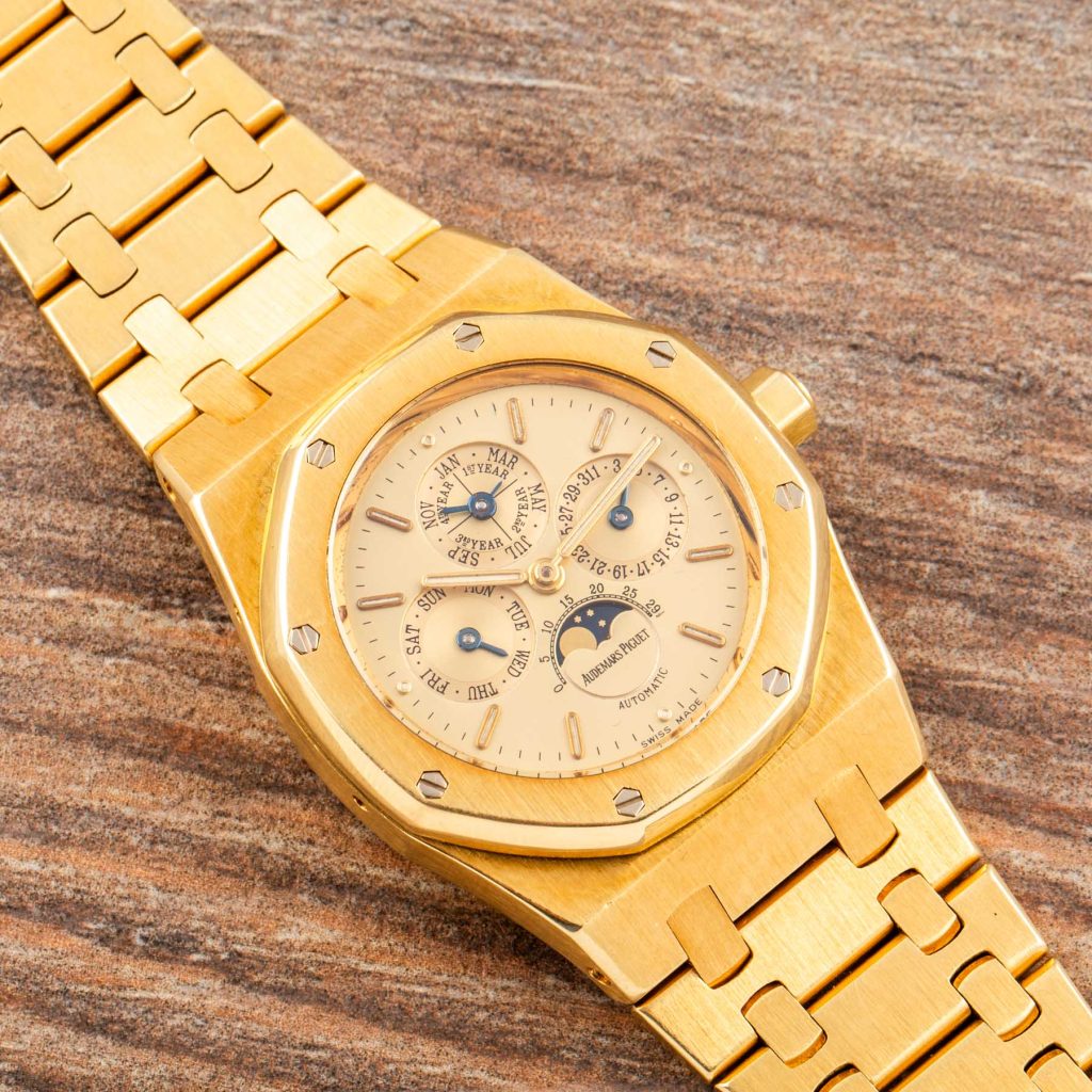 Introduced in 1996 and produced for only four years, until 2000, reference 25800 is among the smallest perpetual calendar wristwatches ever made. Most likely conceived with the Japanese market in mind, it represents an impressive mechanical achievement, as fitting an automatic perpetual calendar movement inside such a compact case is an extremely challenging task.