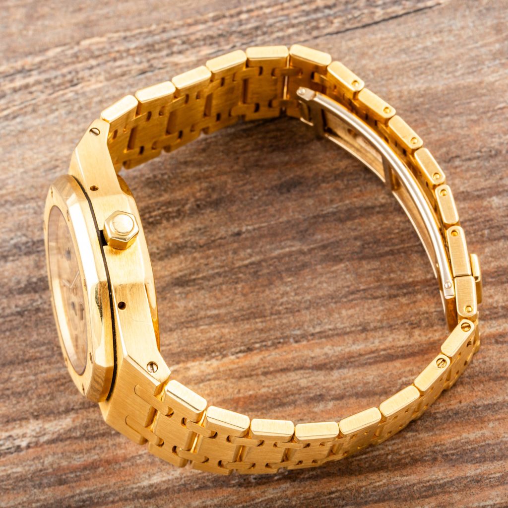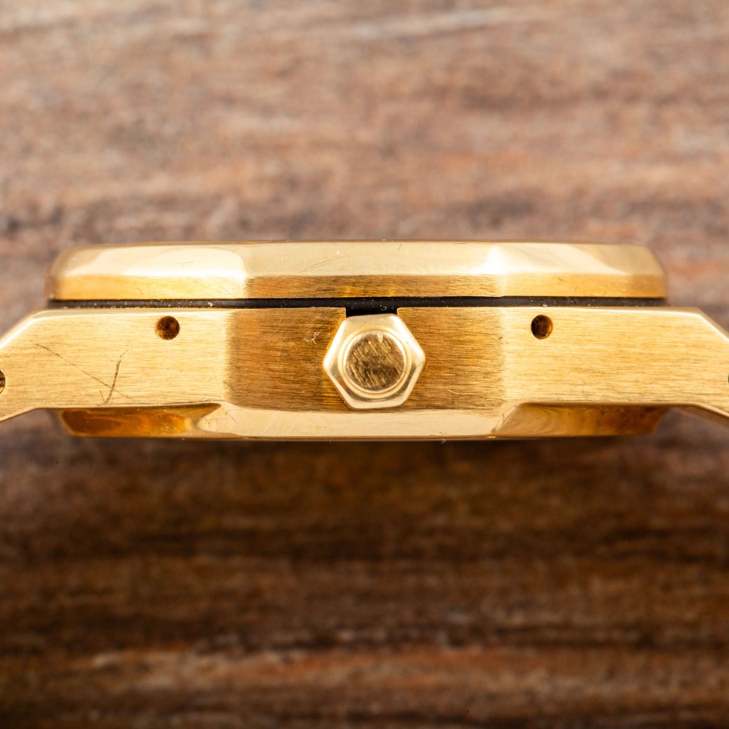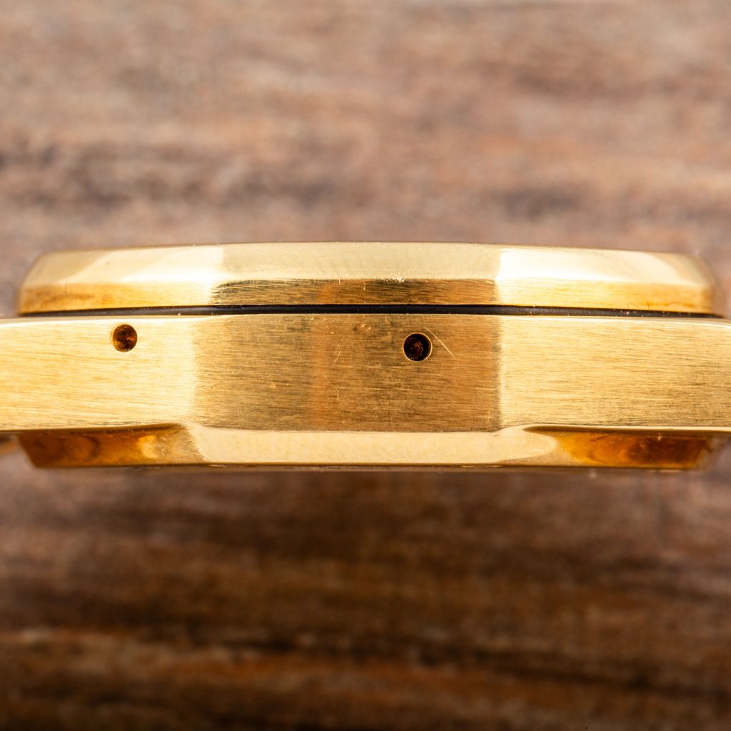 Several dial variations were created during the short production run, making each piece particularly rare and collectible. The present example features a beautiful and warm champagne dial, which perfectly complements the yellow gold case.