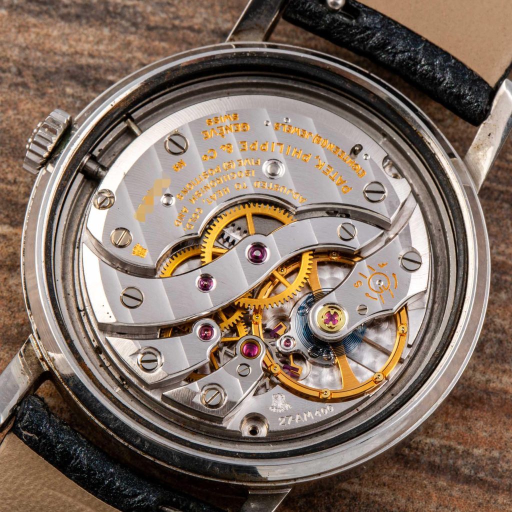 The demand for antimagnetic timepieces emerged during the 1950s, notably driven by institutions such as CERN, whose scientists required watches capable of resisting magnetic interference. In response, several manufacturers, including Rolex, began producing such watches, and Patek Philippe soon followed—distinguishing itself by combining technical functionality with refined design. The ref. 3417 was engineered for robustness, featuring a solid stainless-steel case with screw-down caseback, while the movement is protected by a soft-iron inner shield designed to withstand magnetic fields of up to 450 oersteds.