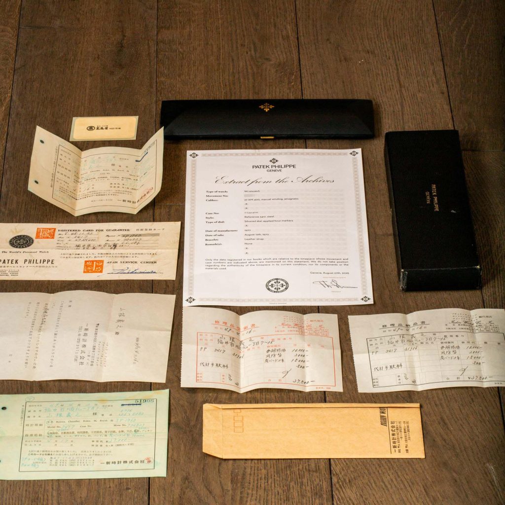 Preserved in excellent overall condition, the watch is accompanied by its original Patek Philippe presentation box, Extract from the Archives confirming both its production and sale in 1970, as well as its original Japanese guarantee booklet, period service documentation, and various historical receipts preserved throughout its lifetime.