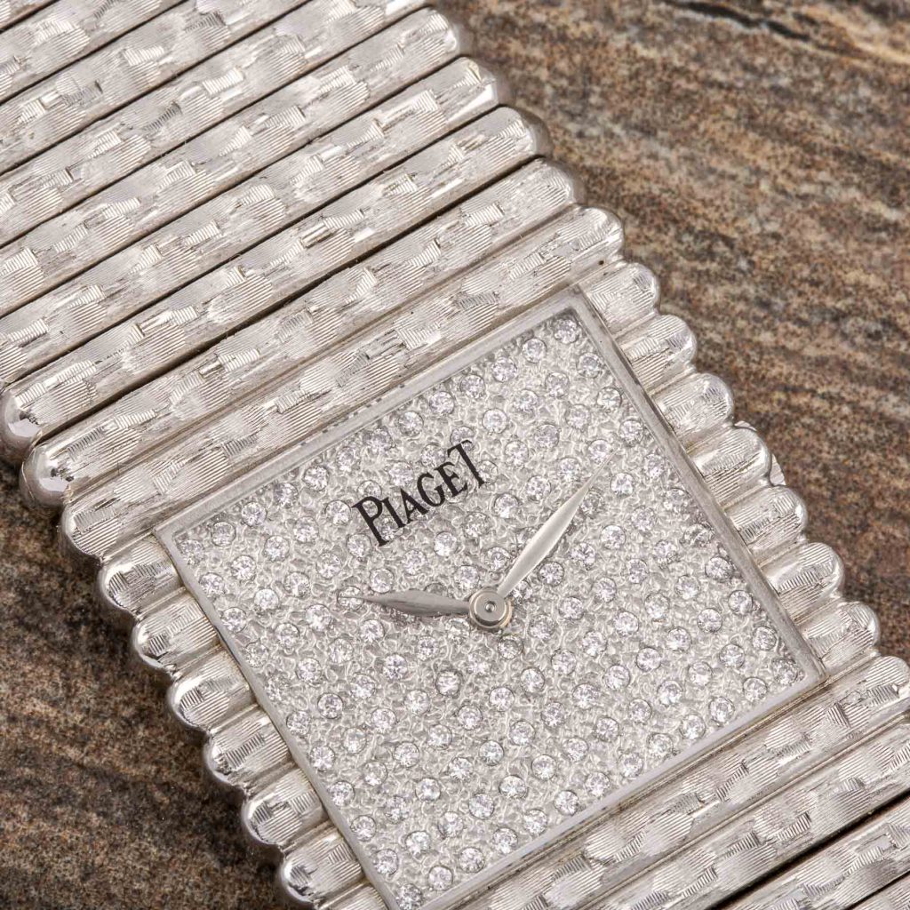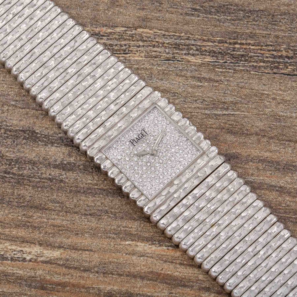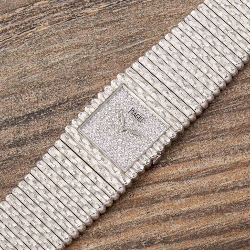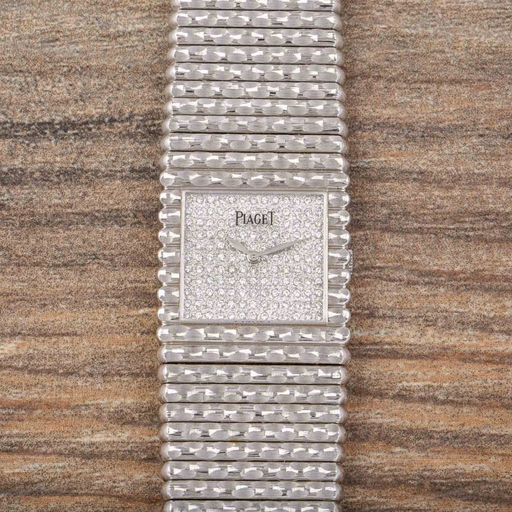 Piaget is internationally celebrated for its creativity and originality, expressed from the very beginning through the development of ultra-thin movements that enabled unconventional formats and bold aesthetic experimentation. Among its most emblematic design languages, the Piaget Emperador line introduced strong geometric cases—often square—designed as a foundation for the Maison’s distinctive fusion of fine watchmaking and high jewellery. Particularly in the 1970s and 1980s, Piaget explored the expressive potential of precious metals, creating sculptural watches defined as much by their presence on the wrist as by their technical refinement.