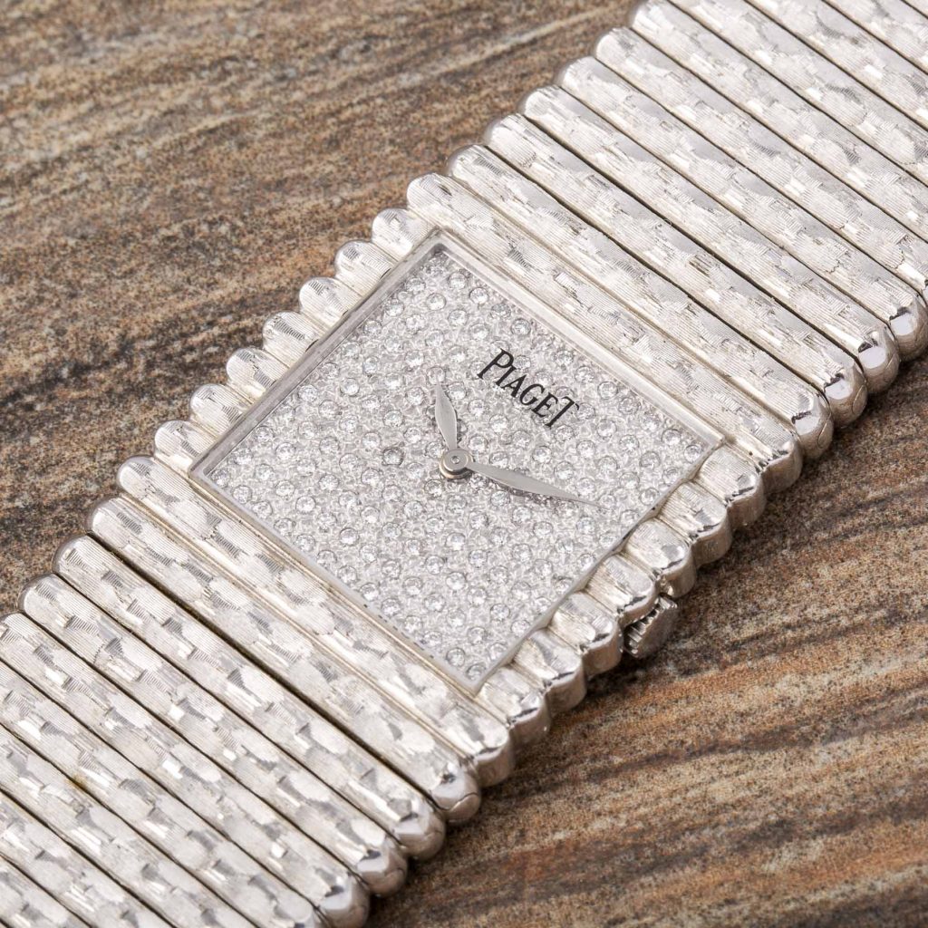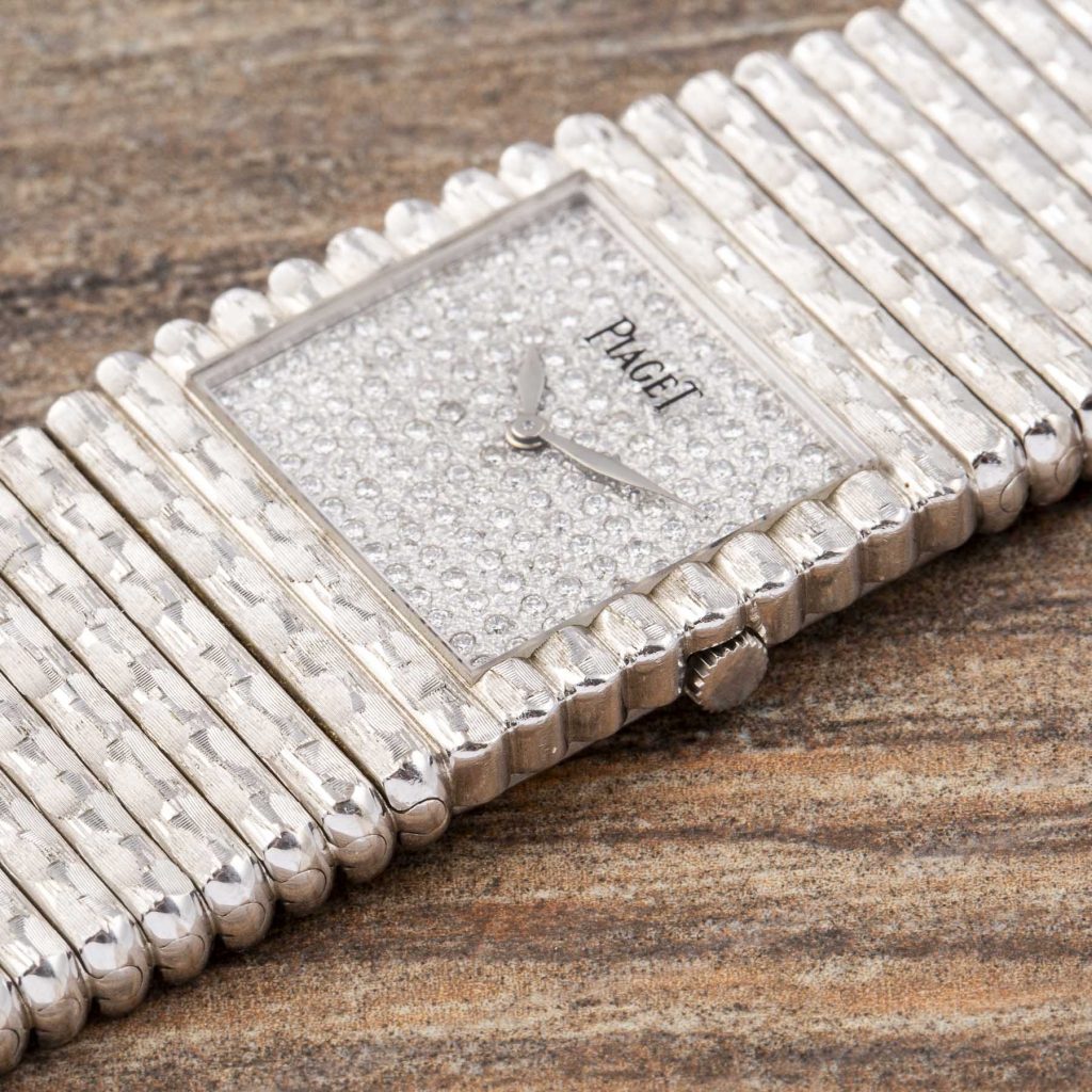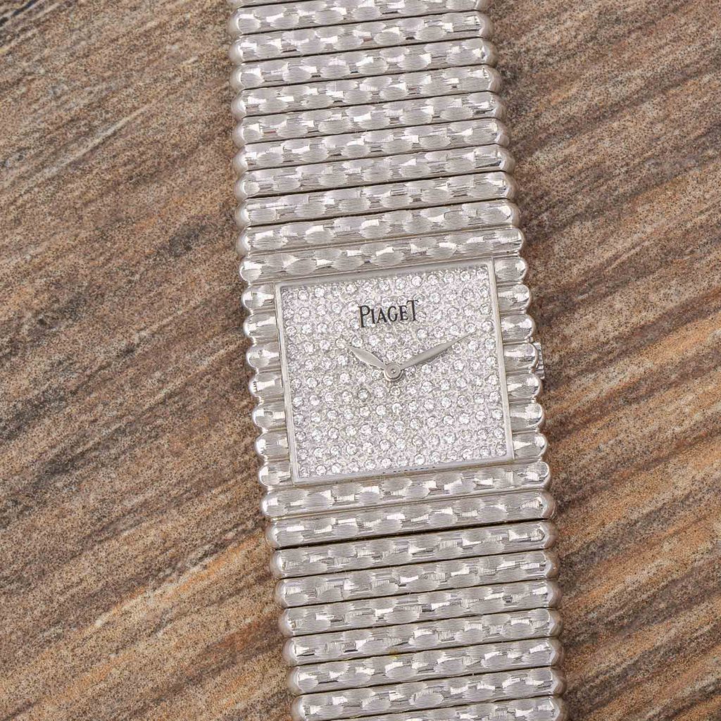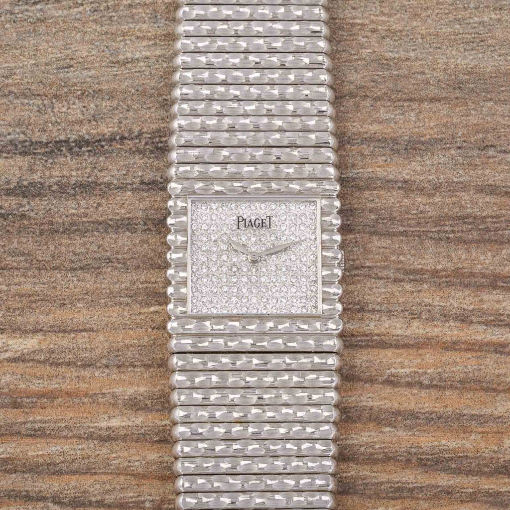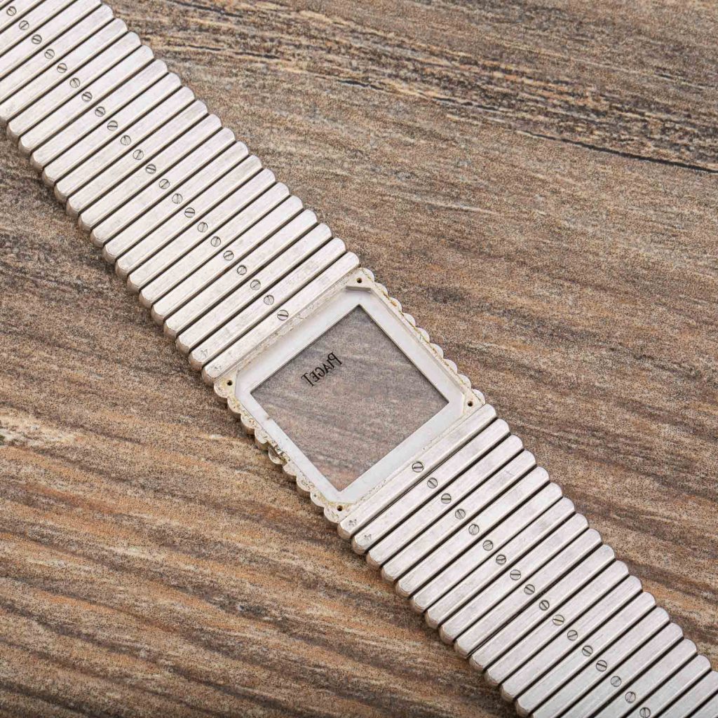 Piaget is internationally celebrated for its creativity and originality, expressed from the very beginning through the development of ultra-thin movements that enabled unconventional formats and bold aesthetic experimentation. Among its most emblematic design languages, the Piaget Emperador line introduced strong geometric cases—often square—designed as a foundation for the Maison’s distinctive fusion of fine watchmaking and high jewellery. Particularly in the 1970s and 1980s, Piaget explored the expressive potential of precious metals, creating sculptural watches defined as much by their presence on the wrist as by their technical refinement.